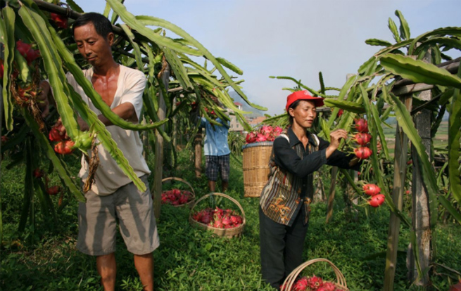 截至2015年火龍果已成為當(dāng)?shù)厝罕娒撠氈赂坏摹靶腋9?。?jīng)過不斷的培育和壯大,羅甸縣現(xiàn)火龍果種植面積達(dá)3.25萬畝,投產(chǎn)面積2萬畝,預(yù)計(jì)年產(chǎn)量2.1萬噸、產(chǎn)值1.9億元,目前產(chǎn)量達(dá)7350噸、產(chǎn)值7370萬畝。帶動(dòng)農(nóng)戶1.25萬戶,5.16萬人致富增收,其中覆蓋建檔立卡貧困戶3765戶1.5萬人。廣東勝佳超市這次火龍果“黔貨出山”,幫助了黔南羅甸縣多家貧困戶,每天都有羅甸縣龍坪填貧困人員到火龍果基地摘果、運(yùn)送、選果、裝車。