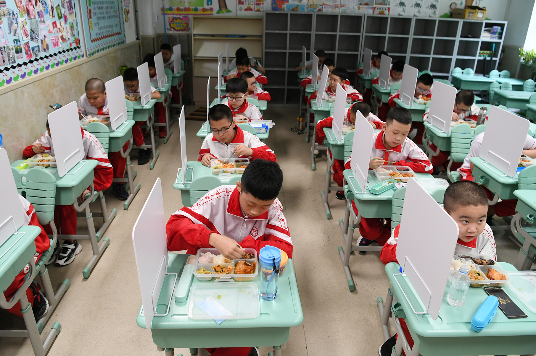 長春市小學五、六年級學生開學復課,與他們同期回到校園的還有初一、初二年級的學生,返校園學生施行分桌用餐。