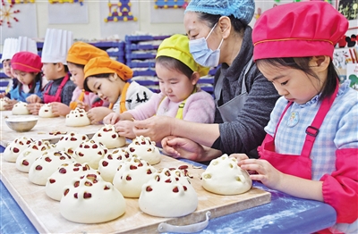 近日,山東省煙臺(tái)市福山區(qū)實(shí)驗(yàn)幼兒園開展“品民俗 迎新春”主題活動(dòng),通過學(xué)寫福字春聯(lián)、制作鞭炮玩具、剪窗花、蒸餑餑等活動(dòng),讓孩子們感受傳統(tǒng)民俗文化的魅力。