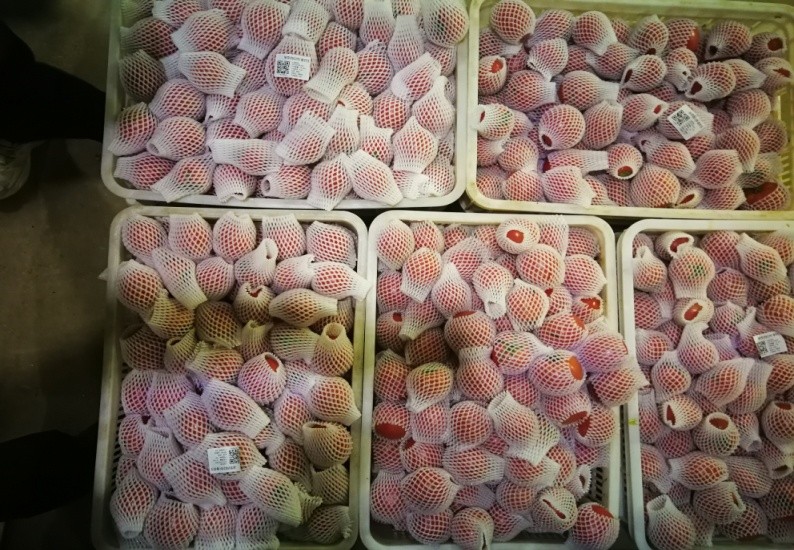 番茄包裝方式多樣,應(yīng)根據(jù)品種特點(diǎn)、銷售方式選擇合理的番茄包裝方式;使用的包裝材料型號(hào)應(yīng)與番茄規(guī)格匹配,既可避免機(jī)械損傷問題發(fā)生,也能避免包裝材料浪費(fèi),降低包裝費(fèi)用。氣調(diào)包裝為新型包裝方式,通過調(diào)節(jié)不同比例的氣體,最大限度抑制番茄呼吸強(qiáng)度,從而延長番茄貨架期。電商銷售的番茄,包裝方式應(yīng)重點(diǎn)關(guān)注破損問題,以及避免擠壓造成的腐爛問題發(fā)生。夏季分選、加工、包裝等工作時(shí),應(yīng)配戴手套,可避免手溫過高造成番茄內(nèi)部損傷,利于保持番茄商品性。