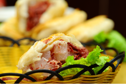起初,和所有河間驢肉火燒一樣,為了火燒軟和、好吃,除了里面多放油,火燒的外層還要刷油,咬一口,香酥油脆。但是隨著人們生活水平提高,更多的人已經(jīng)不喜歡吃太多油膩食品,張海濤開始研究火燒的轉(zhuǎn)變。