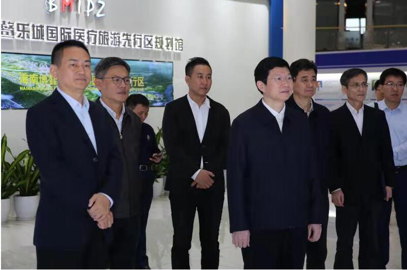 國(guó)家藥品監(jiān)督管理局黨組書(shū)記、副局長(zhǎng)李利(右四)在博鰲樂(lè)城國(guó)際醫(yī)療旅游先行區(qū)調(diào)研