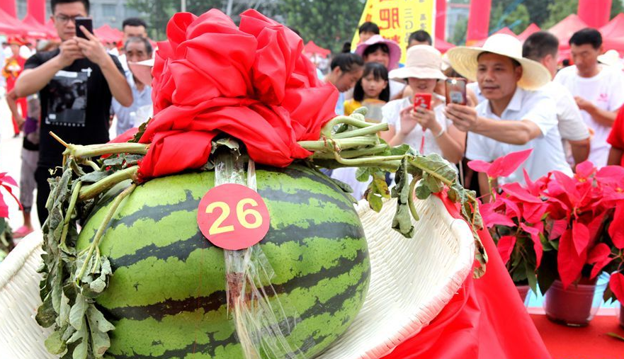 當(dāng)日,鄢陵縣陶城鎮(zhèn)舉辦“瓜王大賽”,共收到參賽西瓜800多個(gè),僅重量超過(guò)30公斤的西瓜就有100多個(gè)。通過(guò)“角逐”,該鎮(zhèn)南孫莊村瓜農(nóng)孫留洋培育的重達(dá)35.5公斤的西瓜,最終奪得“瓜王”稱號(hào)。